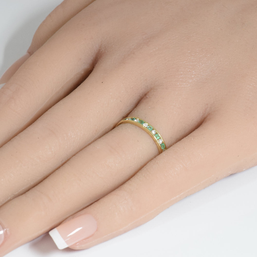 DIAMOND CLOSEOUT! .26ct G SI 14K Yellow Gold Diamond & Emerald Gemstone Anniversary Band Ring Size 6.5
