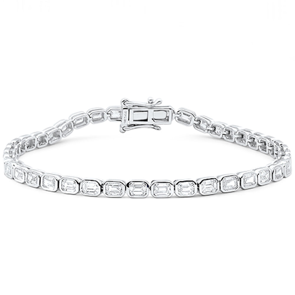 SPECIAL!4.40ct G SI 14K White Gold Emerald Cut Diamond Bezel Set Tennis Bracelet 7" Long