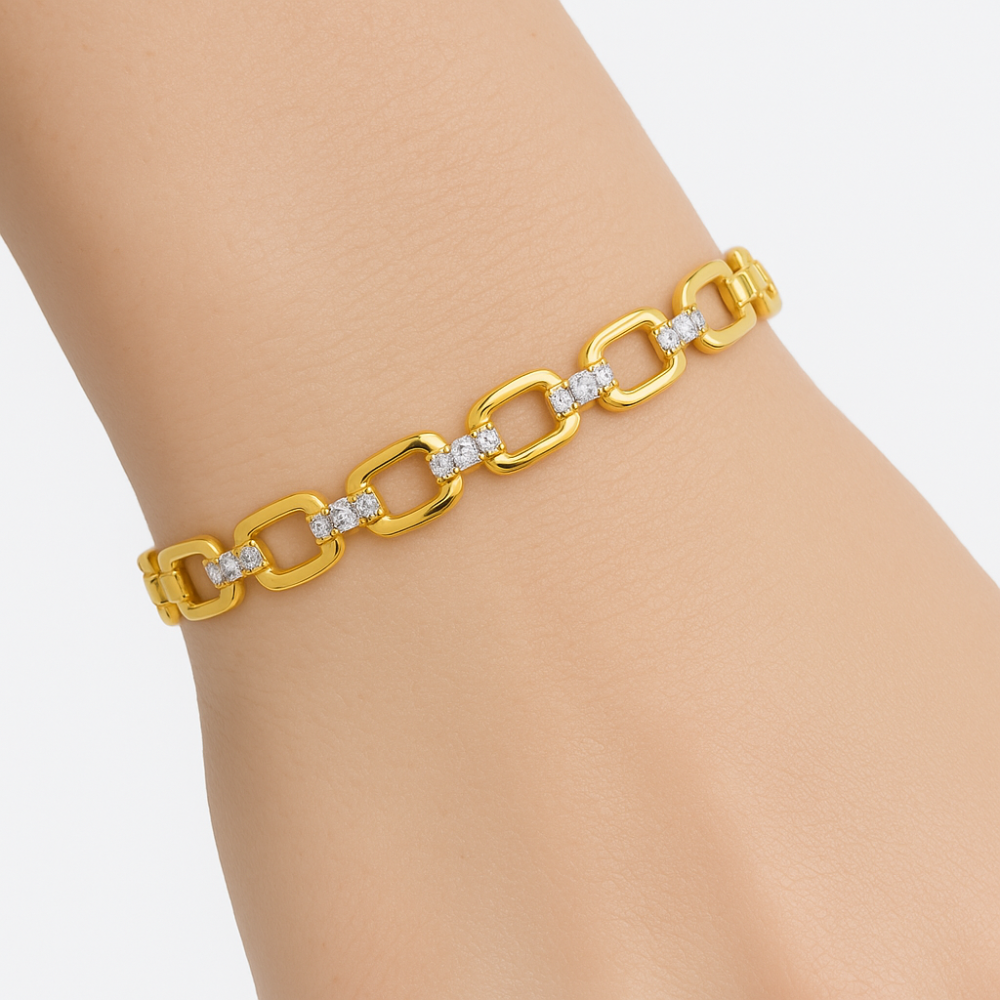 SPECIAL! .49ct G SI 14kt Yellow Gold Diamond Square Link Bracelet 7.5" Long