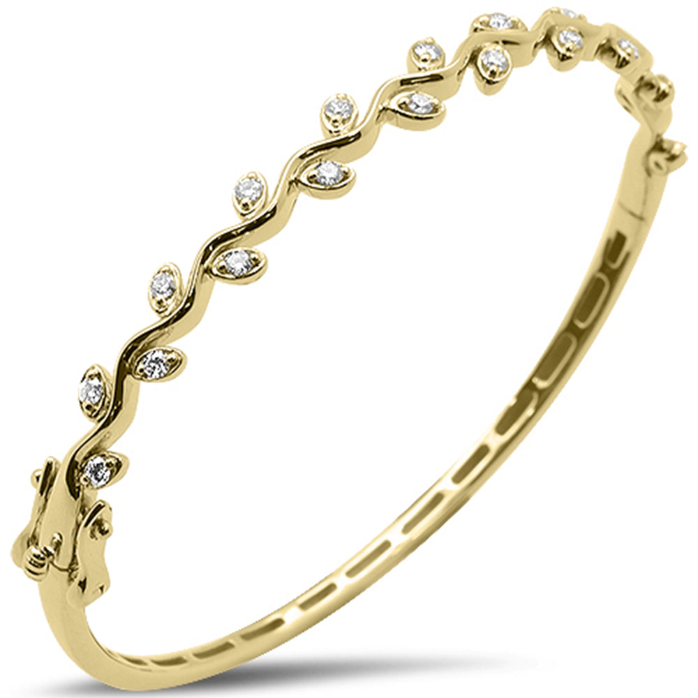 SPECIAL! .49ct G SI 14kt Yellow Gold Round Diamond Leaf Design Bangle Bracelet