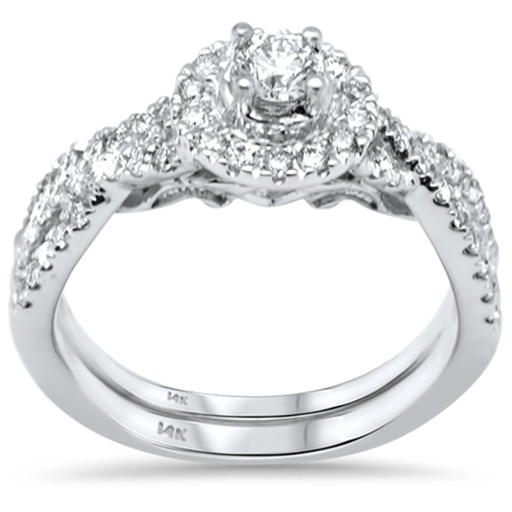 DIAMOND CLOSEOUT! 1.00ct G SI 14K White Gold Diamond Halo Engagement Ring Bridal Set Size 6.5