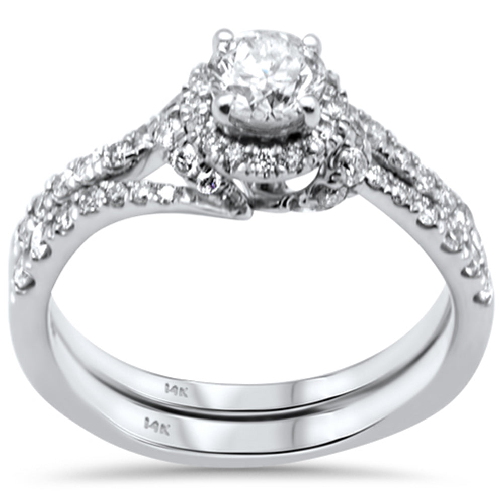 SPECIAL!1.13ct G SI 14K White Gold Diamond 2pcs Solitaire Engagement Ring Bridal Set Size 6.5