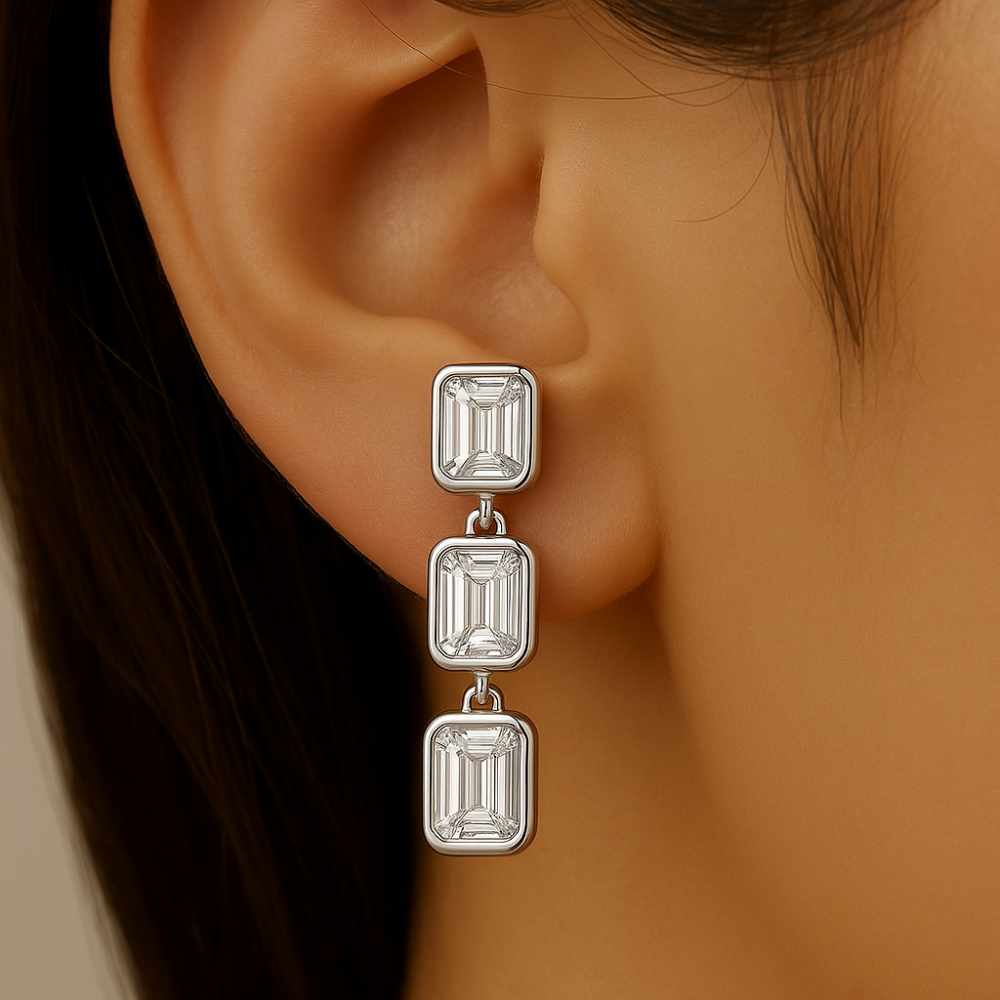 SPECIAL! 0.78ct G SI 14K White Gold Diamond Emerald Cut Diamond Drop Earrings