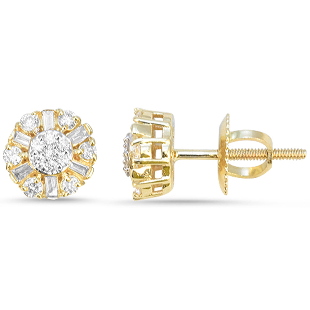 SPECIAL! .29ct G SI 14kt Yellow Gold Diamond Round & Baguette Flower Stud Earrings