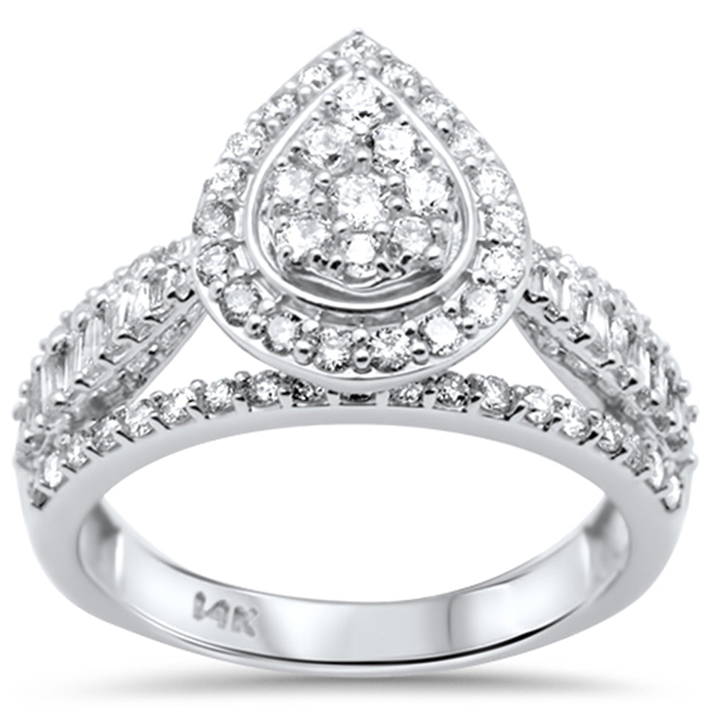 SPECIAL! 1.05ct G SI 14K White Gold Pear Shaped Round & Baguette Diamond Engagement Ring Size 6.5
