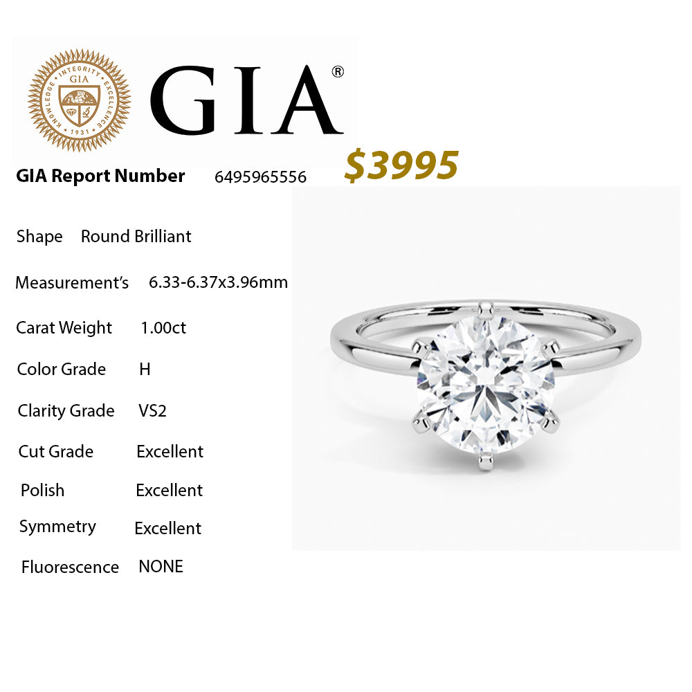 - Diamond Carat Weight: 1.00ct GIA Cert # 6495965556