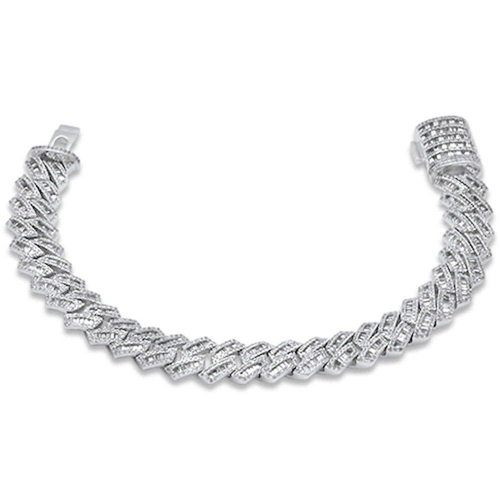 SPECIAL! 7MM 2.73ct G SI 14K White Gold Round & Baguette Diamond Cuban Bracelet 7" Long