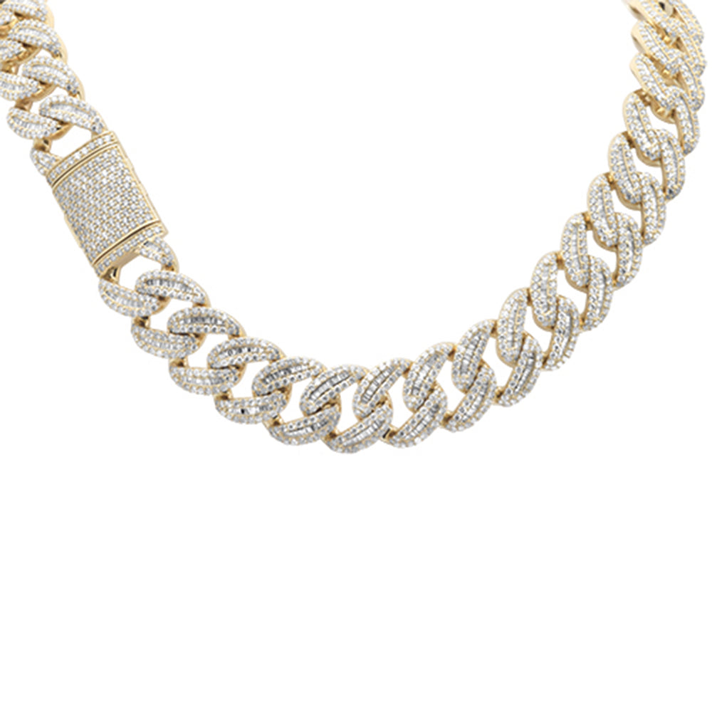 SPECIAL! 7MM 7.39ct G SI 14K Yellow Gold Round & Baguette Diamond Cuban Necklace 20" Long