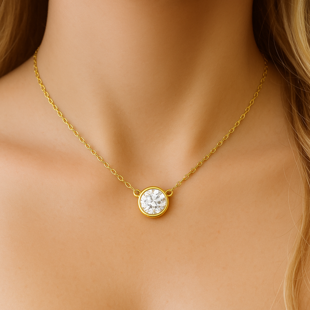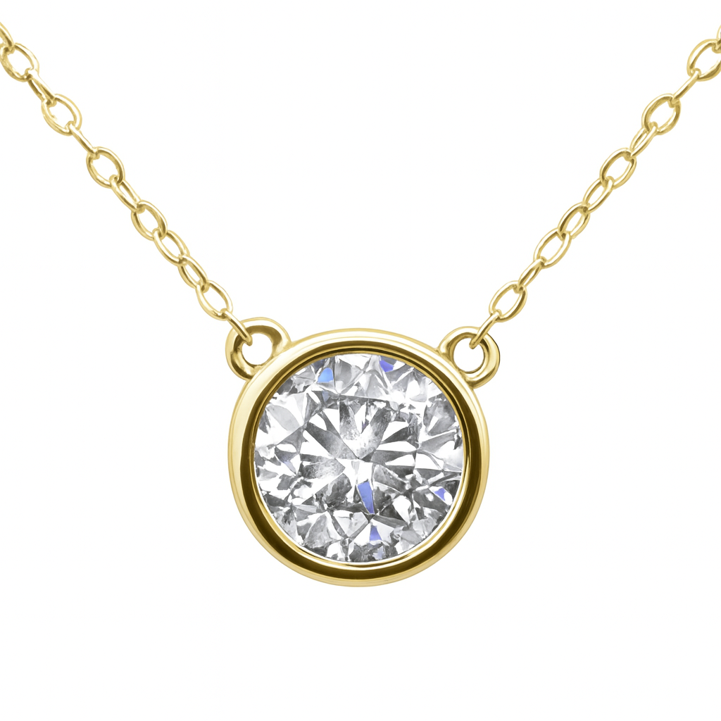 SPECIAL!1.01ct G SI 14K Yellow Gold Round Diamond Bezel Pendant 18" Long