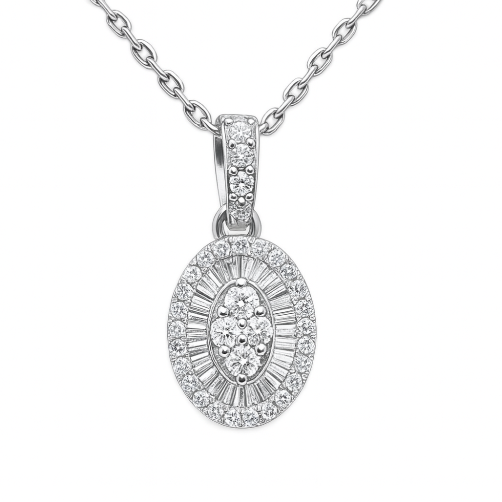 SPECIAL!.25ct G SI 14K White Gold Diamond Oval Medallion Pendant 18" Long