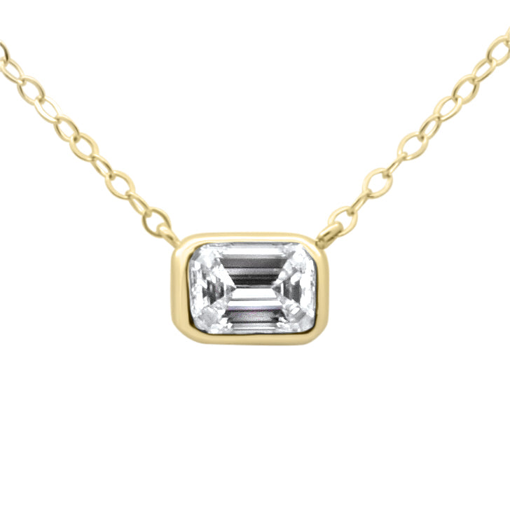 SPECIAL!.32ct G SI 14K Yellow Gold Emerald Cut Diamond Solitaire Pendant Necklace 18" Long