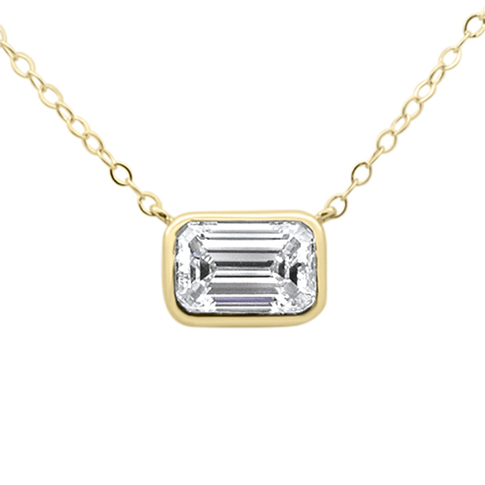 SPECIAL!.71ct G SI 14K Yellow Gold Emerald Cut Diamond Solitaire Pendant Necklace 18" Long