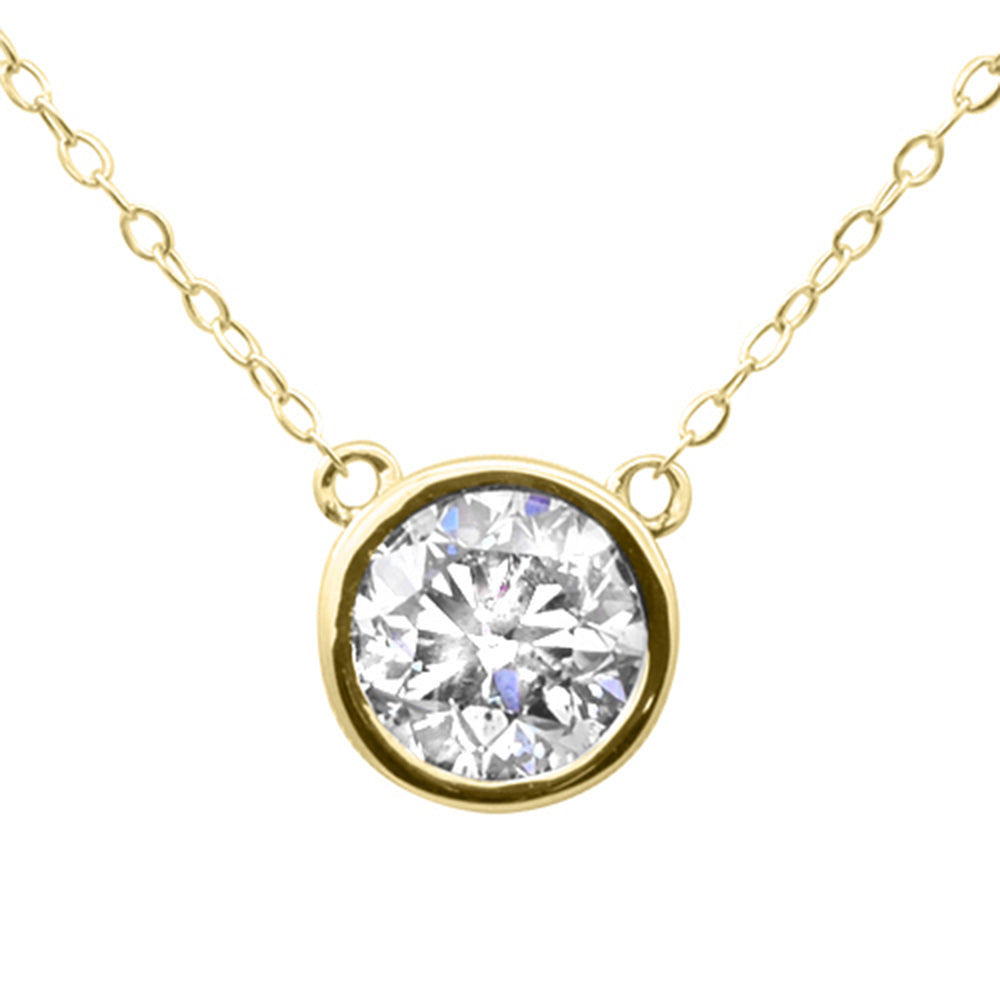 SPECIAL! .90ct G SI 14K Yellow Gold Round Diamond Bezel Pendant 18" Long