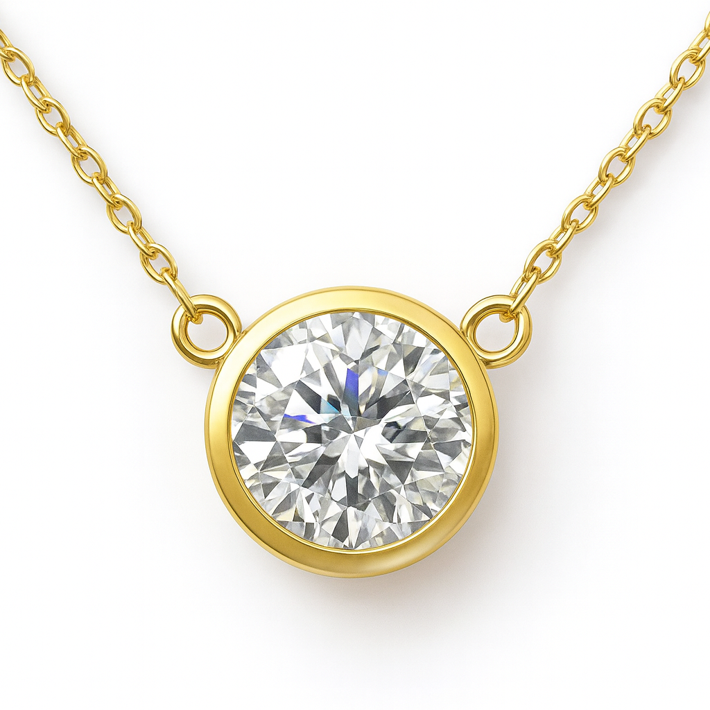 SPECIAL! 1.34ct G SI 14KT Yellow Gold Round Diamond Bezel Pendant Necklace 18" long