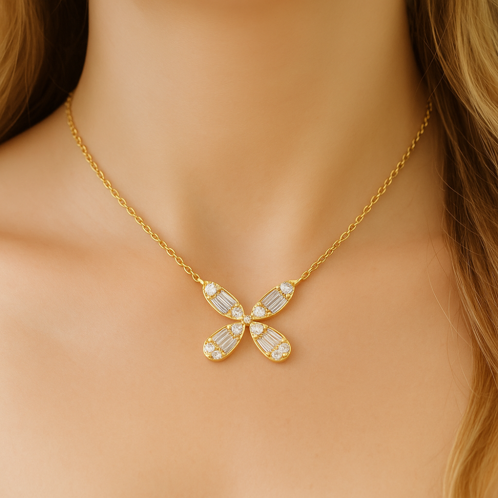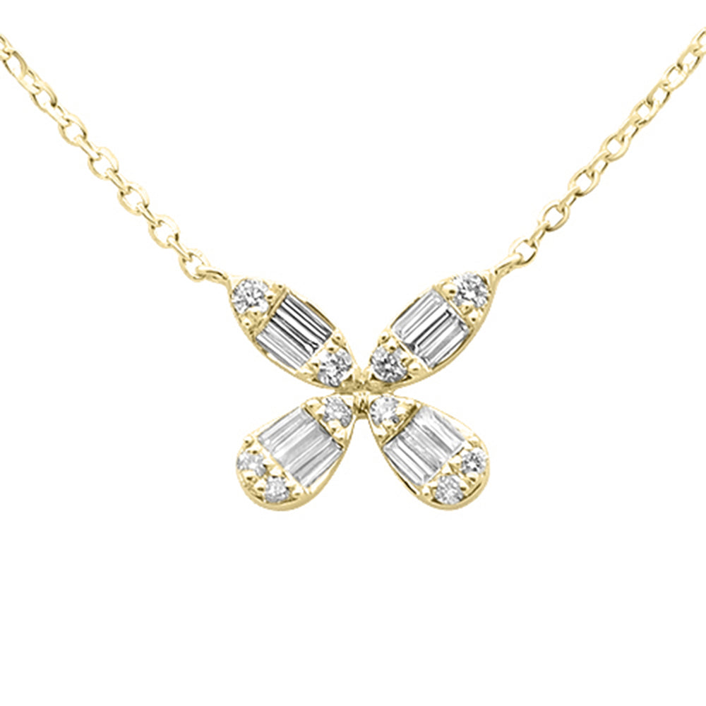 SPECIAL! .17ct G SI 14K Yellow Gold Round & Baguette Diamond Flower Pendant Necklace 18" Long