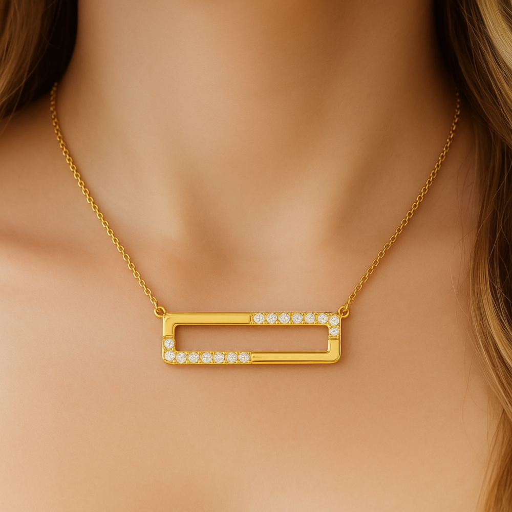 .SPECIAL!12ct G SI 14kt Yellow Gold Diamond Bar Pendant Necklace 18" long