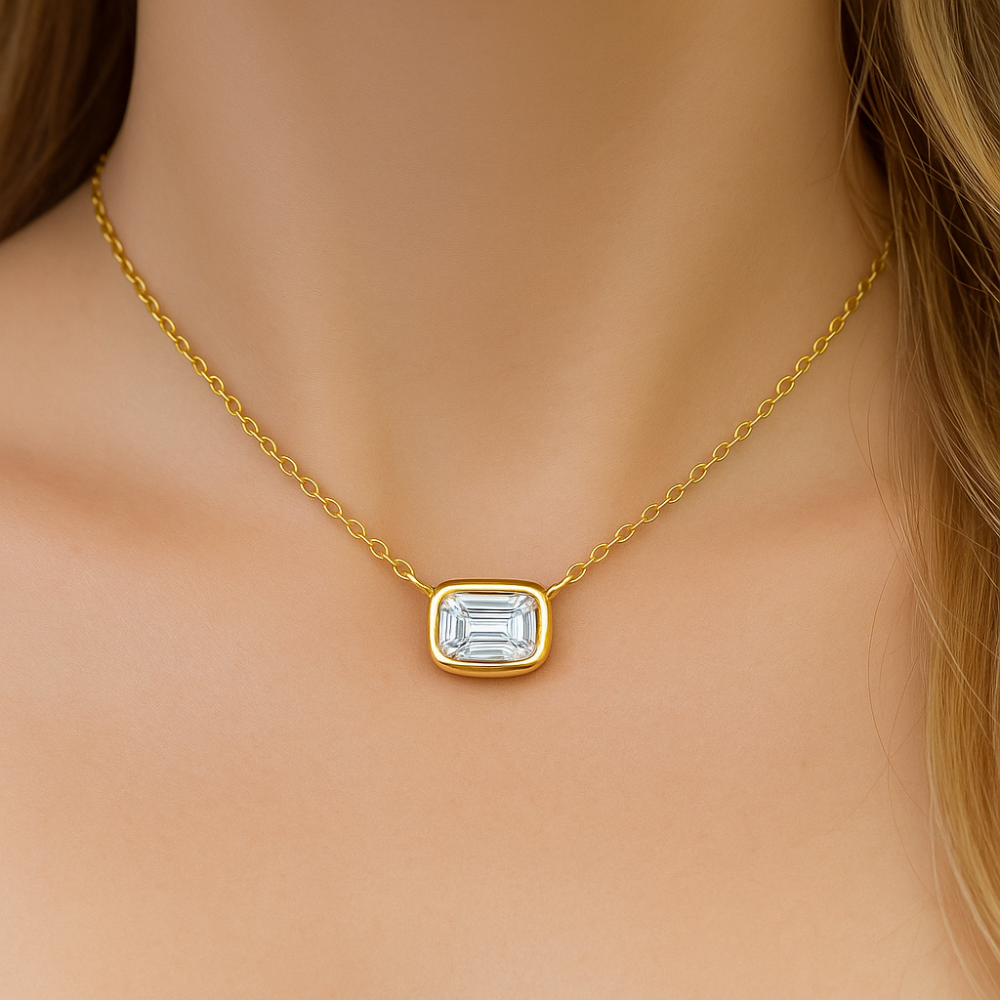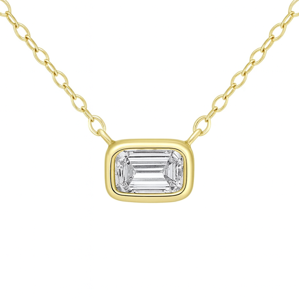SPECIAL!.32ct G SI 14K Yellow Gold Bezel Set Emerald Cut Diamond Pendant 18" Long