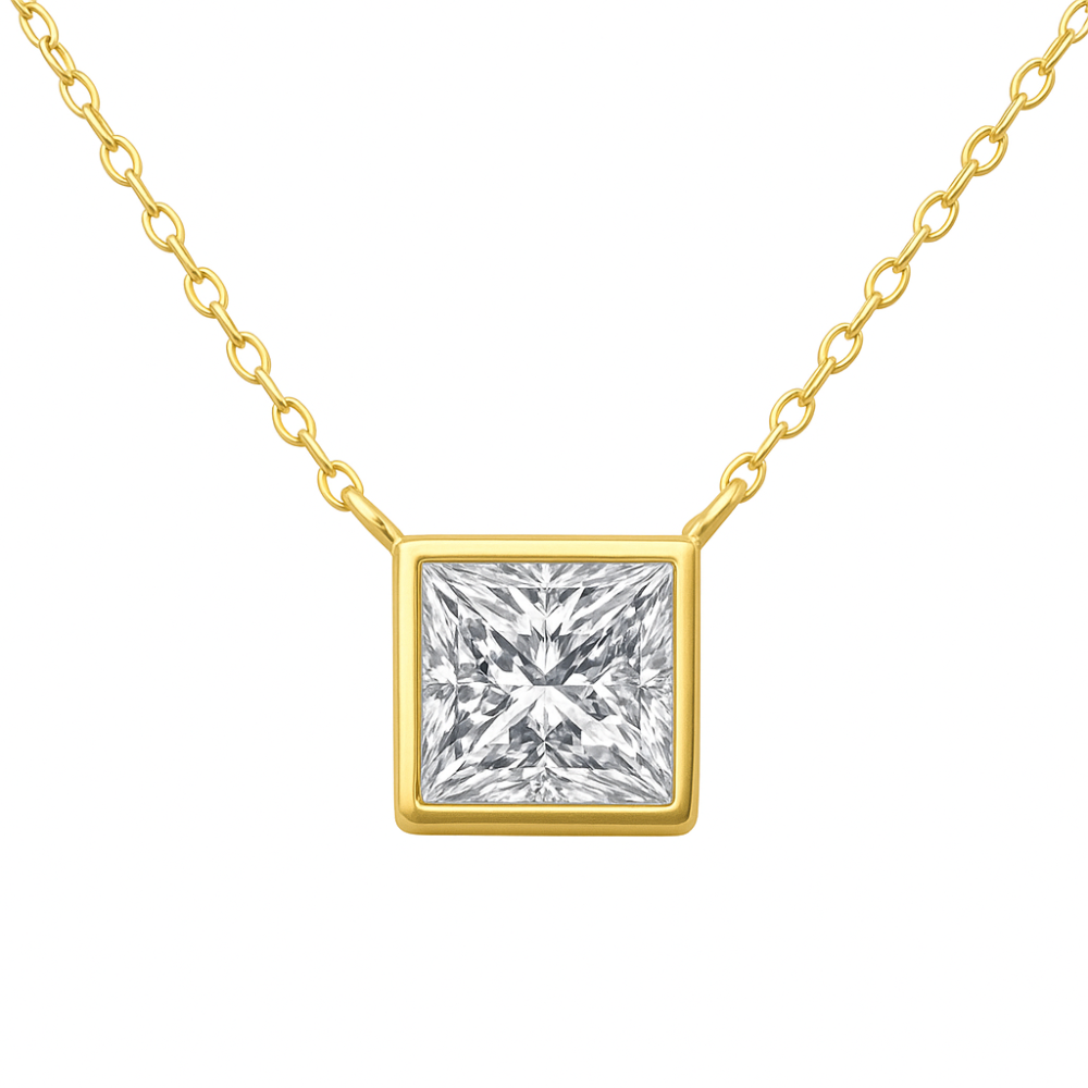 SPECIAL!.60ct G SI 14K Yellow Gold Princess Cut Diamond Pendant 18" Long