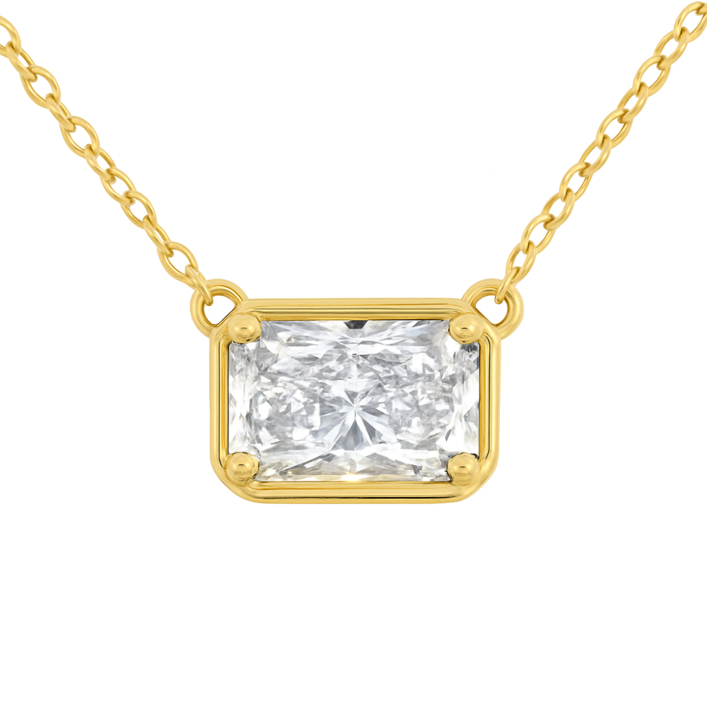 SPECIAL! 1.01ct G SI 14kt Yellow Gold Bezel Set Radiant Cut Diamond Pendant Necklace 18"