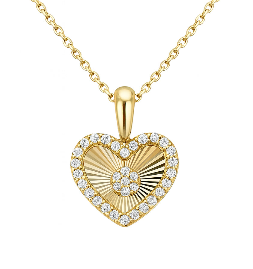 SPECIAL!.24ct G SI 14kt Yellow Gold Diamond Heart Shape Disc Medallion Pendant Necklace 18" Long