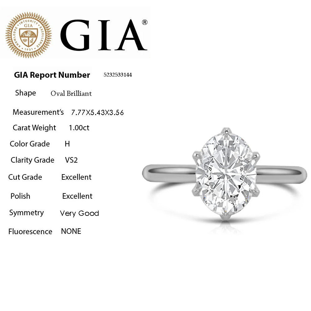 SPECIAL! 1.00ct H-VS2 GIA CERT 14K White Gold Oval Cut Diamond Solitaire Engagement Ring