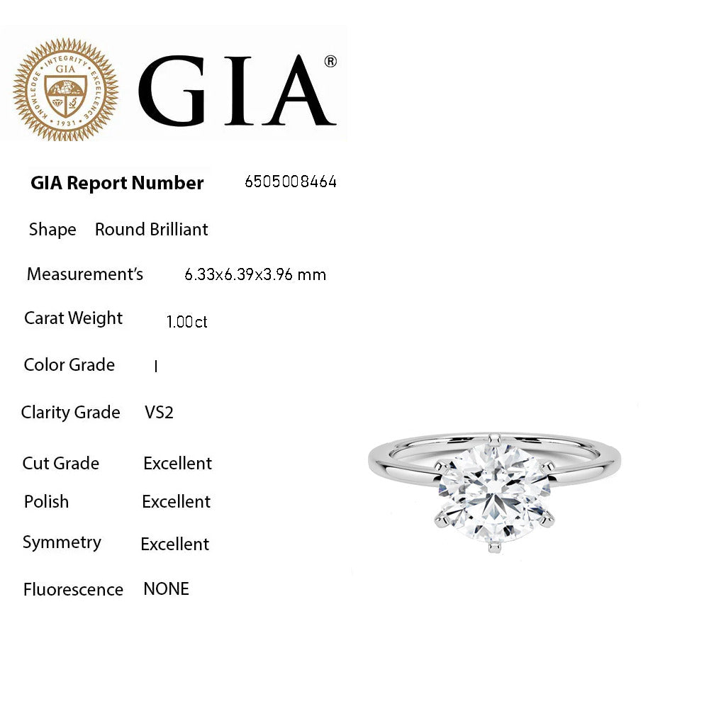 SPECIAL! 1.00ct I-VS2 GIA CERTIFIED 14K White Gold Round Diamond Solitaire Ring Size 6