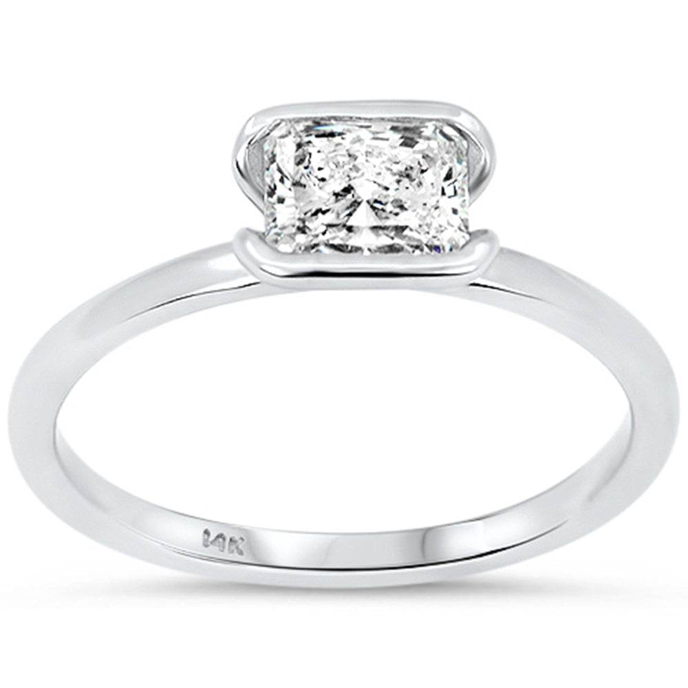 SPECIAL! .70ct G SI 14kt White Gold Diamond Half Bezel Set Radiant Cut Engagement Ring Size 6.5