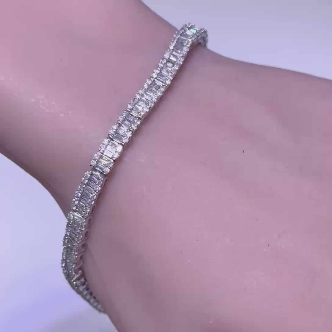 DIAMOND CLOSEOUT! 4.03ct G SI 14K White Gold Round & Baguette Diamond Tennis Bracelet