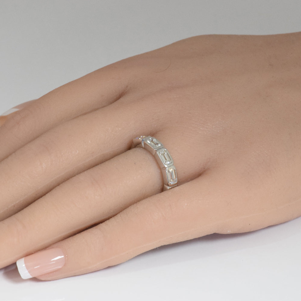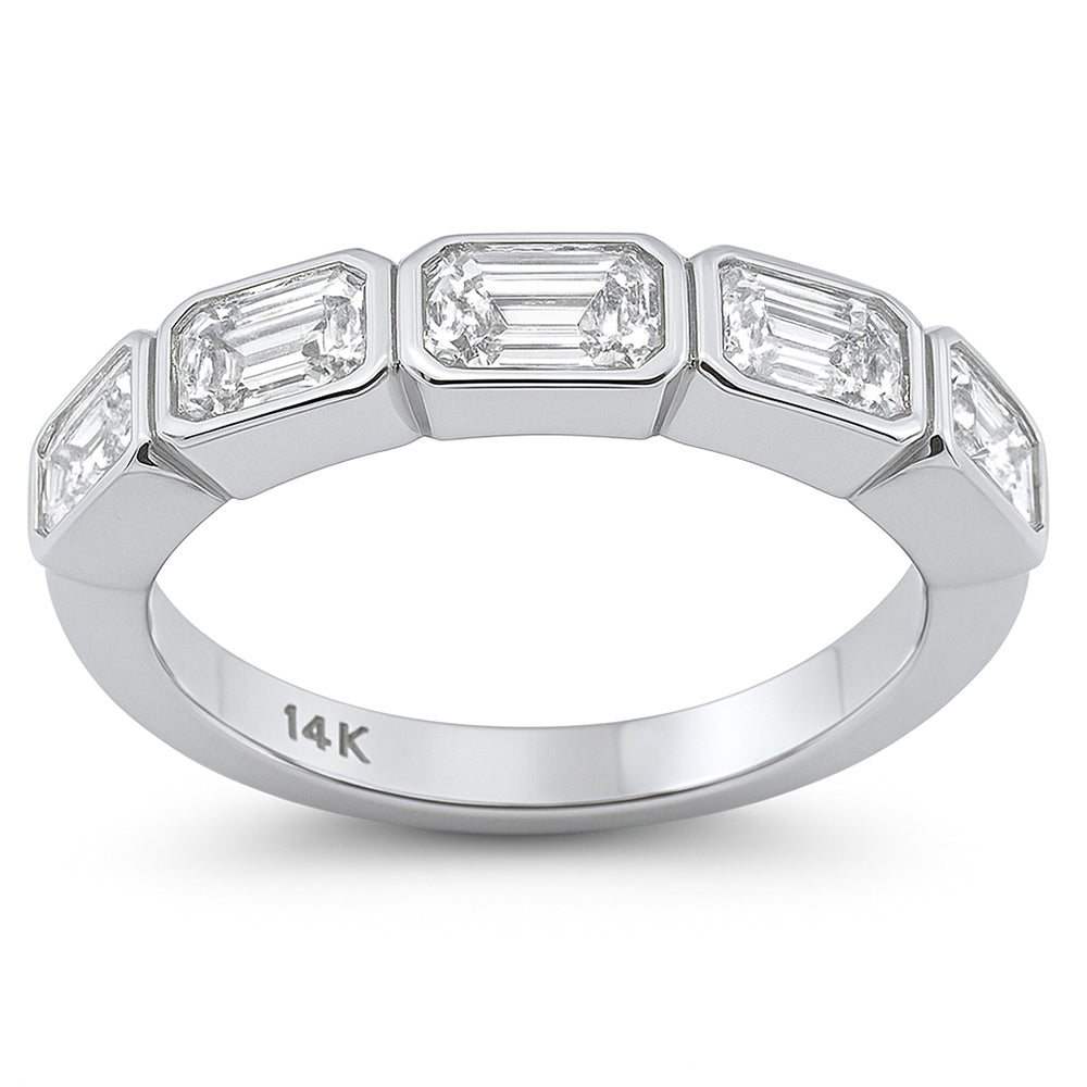 SPECIAL!1.53ct G SI 14K White Gold Emerald Cut Diamond East West Half Eternity Ring Band Size 6.5