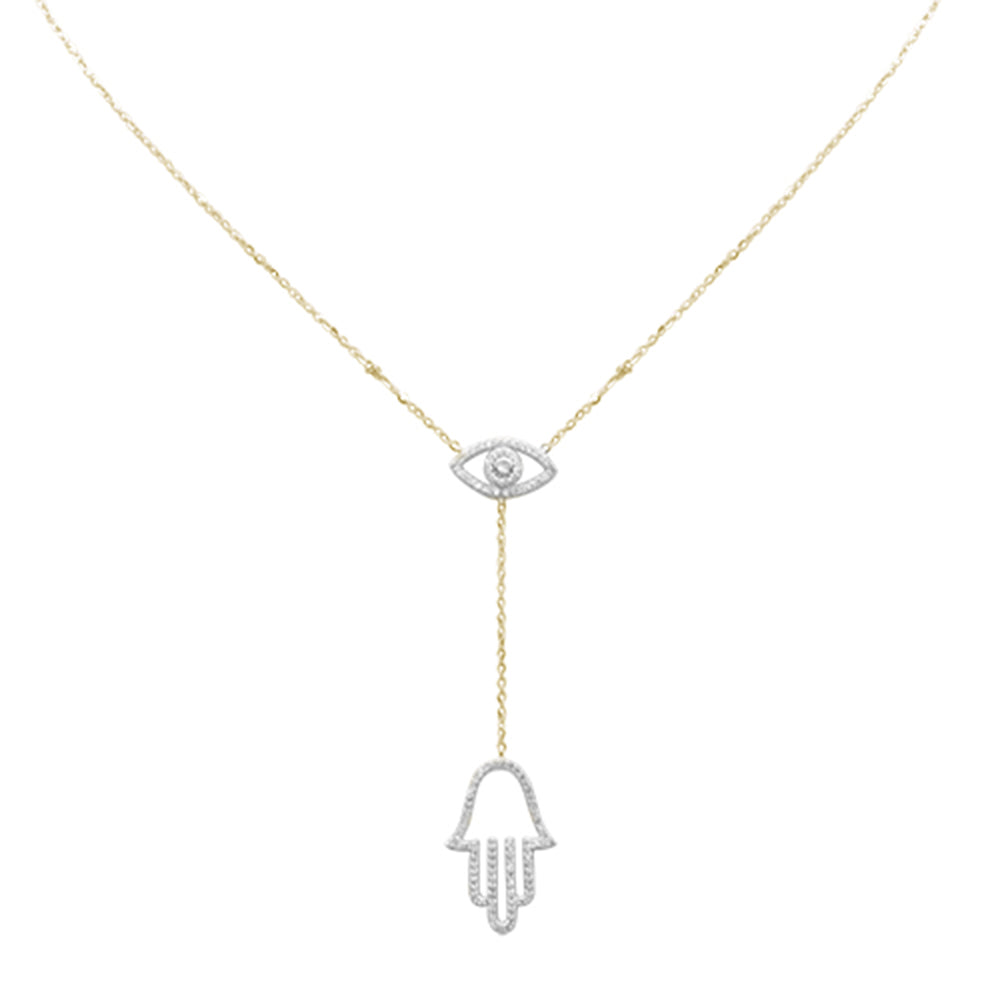 DIAMOND CLOSEOUT! .25ct G SI 14K Yellow Gold Diamond Evil Eye & Hamsa Pendant Necklace 16+2" Ext