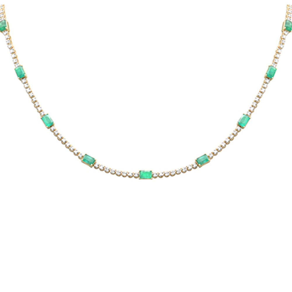 SPECIAL! 10.62ct F SI Round Diamond & Green Emerald Gemstone Necklace 18"