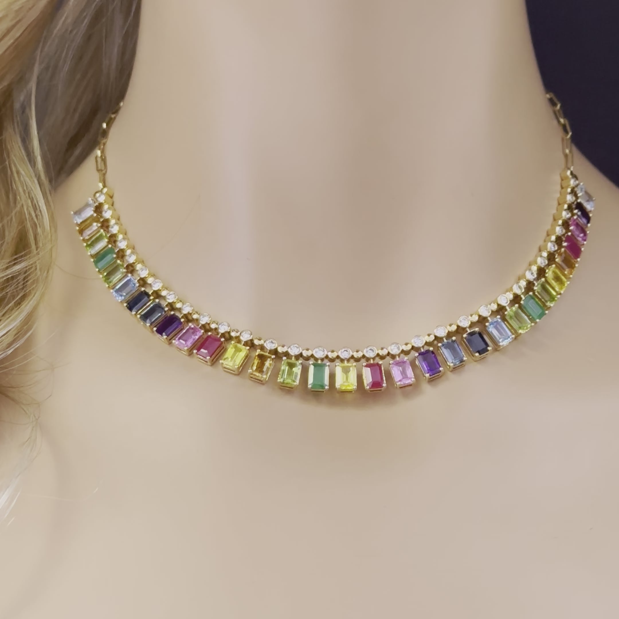 SPECIAL! 22.86ct G SI 14K Yellow Gold Diamond & Multi Color Gemstone Necklace 14" + 2" EXT