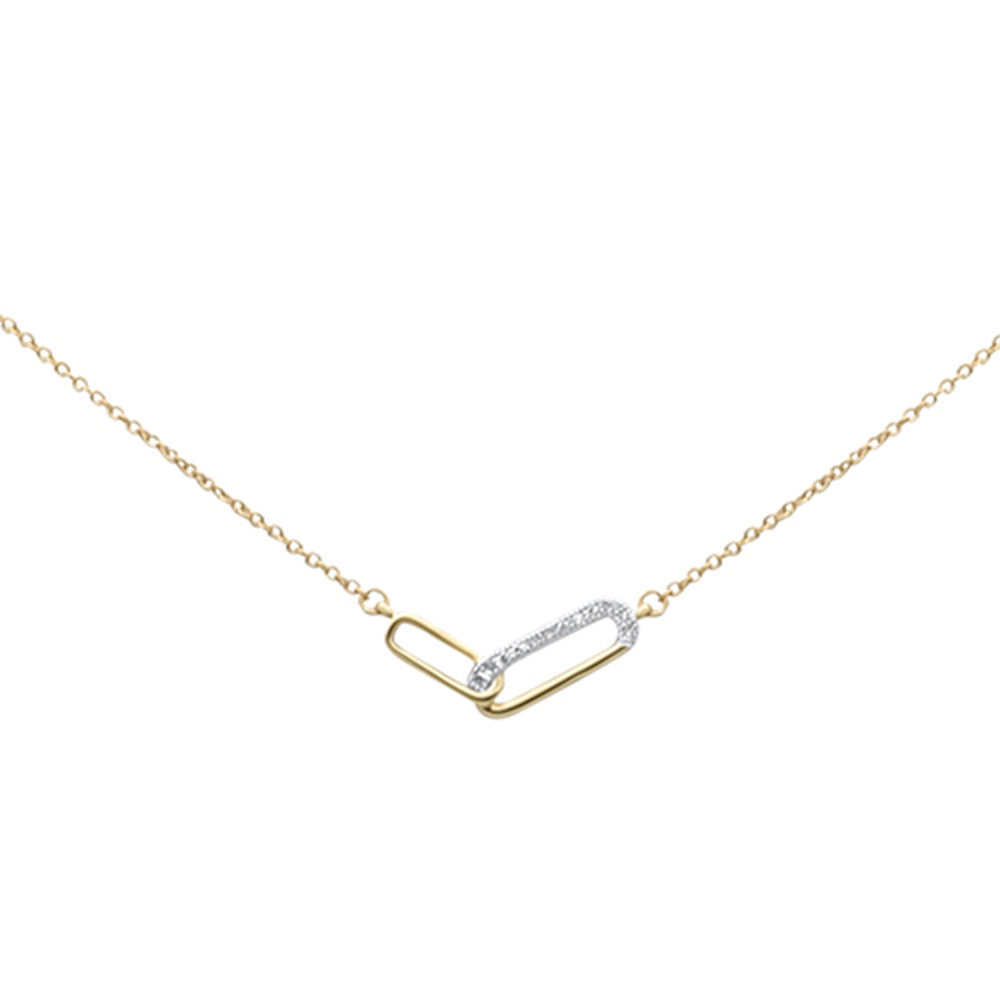 .03ct G SI 14K Yellow Gold Diamond Paperclip Pendant Necklace 18" Long Chain