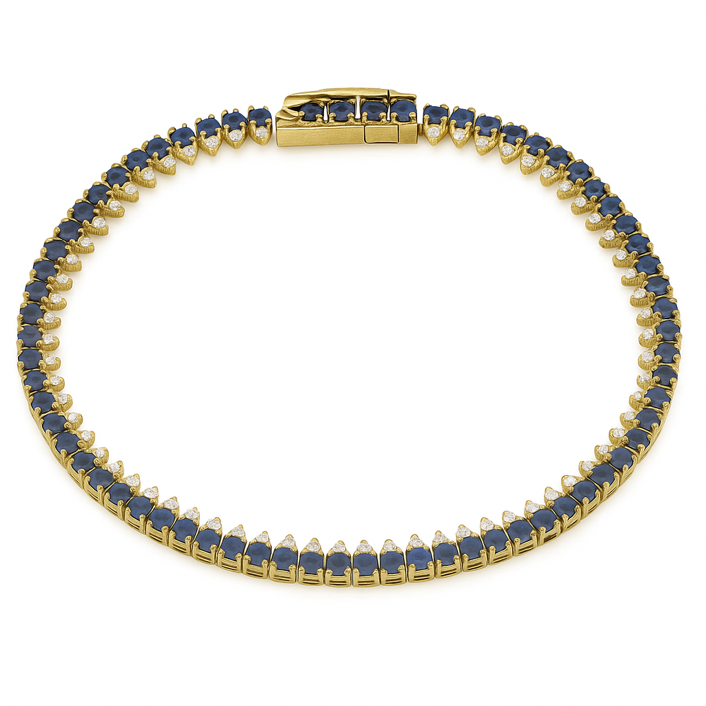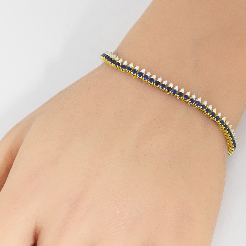 SPECIAL! 3.71ct G SI 14K Yellow Gold Diamond & Blue Sapphire Gemstone Elegant Tennis Bracelet 7" Long