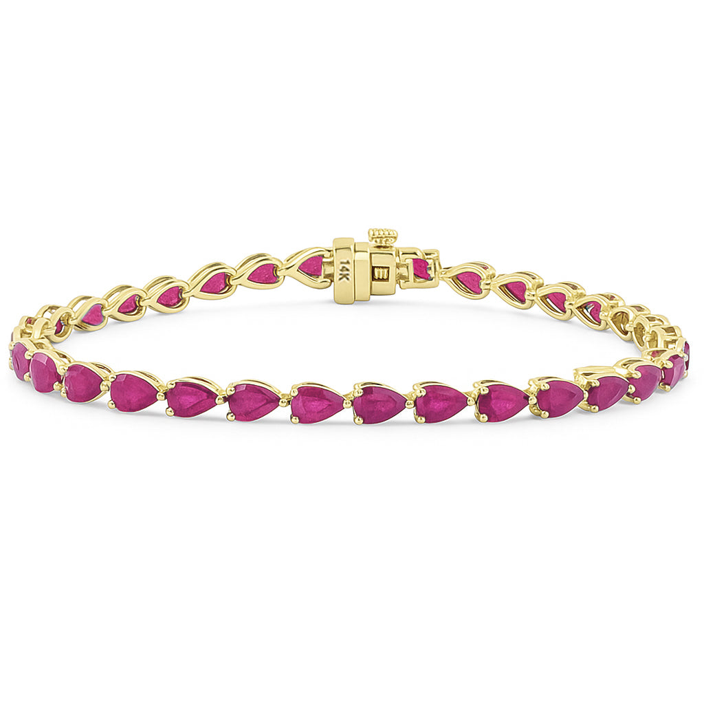 SPECIAL!6.82ct G SI 14K Yellow Gold Pear Shaped Ruby Gemstone Tennis Bracelet 7" Long