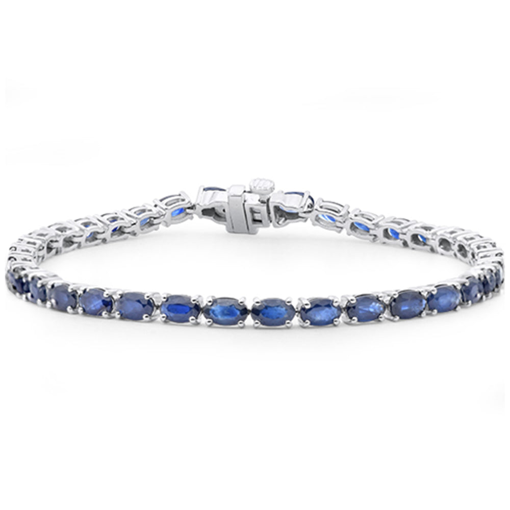 SPECIAL!8.82ct G SI 14K White Gold Oval Shape Blue Sapphire Gemstone Tennis Bracelet 7" Long
