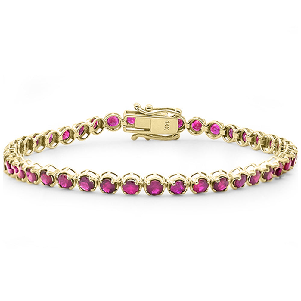 SPECIAL!5.58ct G SI 14K Yellow Gold Round Shape Ruby Gemstone Tennis Bracelet 7" Long