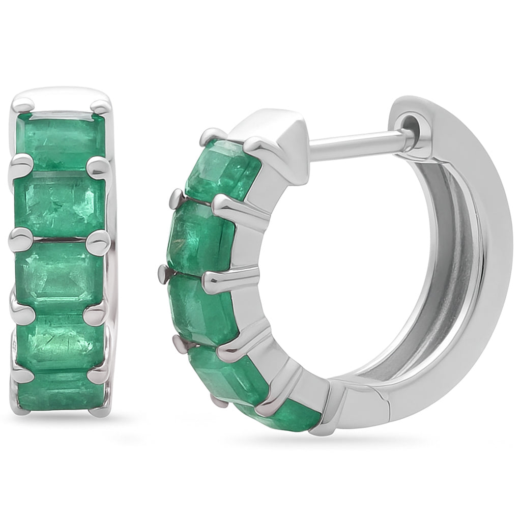 SPECIAL! 2.50ct 14K White Gold Emerald Gemstones Hoop Earrings