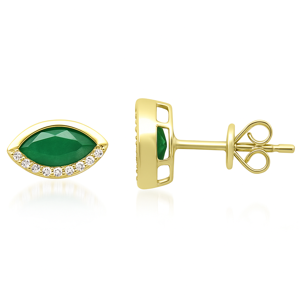 SPECIAL! .87ct G SI 14K Yellow Gold Diamond & Emerald Gemstone Evil Eye Earrings