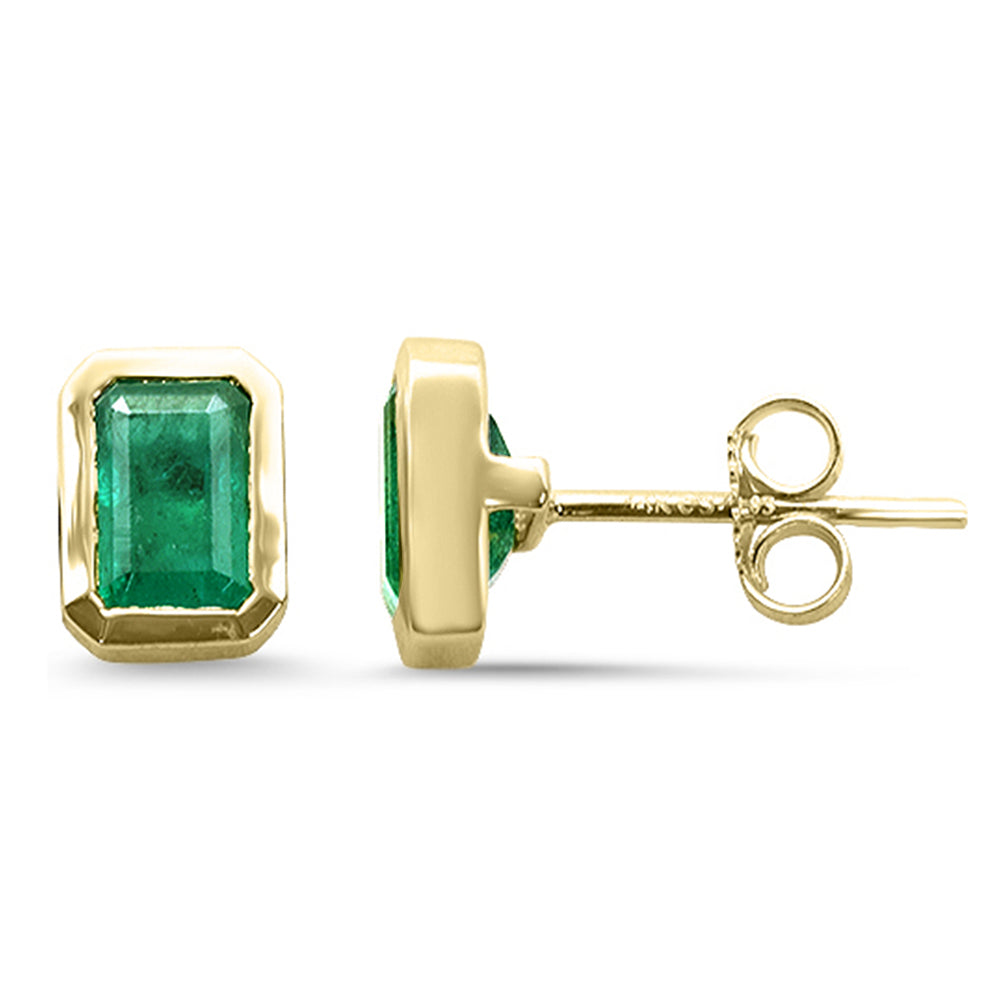 SPECIAL! 1.83ct G SI 14K Yellow Gold Bezel Set Emerald Gemstone Stud Earrings