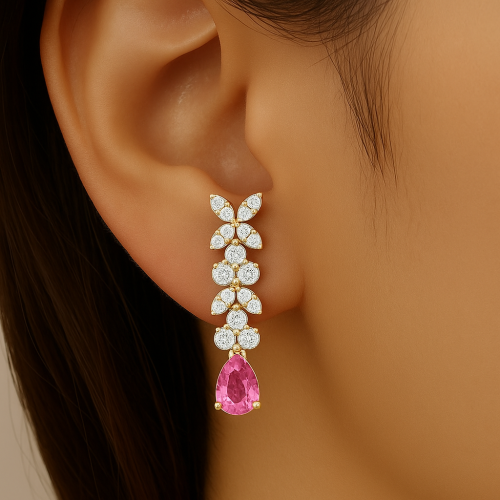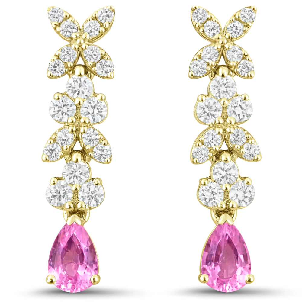 SPECIAL! .68ct G SI 14kt Yellow Gold Diamond & Pink Sapphire Gemstone Drop Earrings