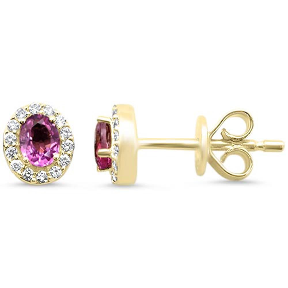 .51ct G SI 14kt Yellow Gold Diamond & Pink Sapphire Halo Stud Gemstone Earrings