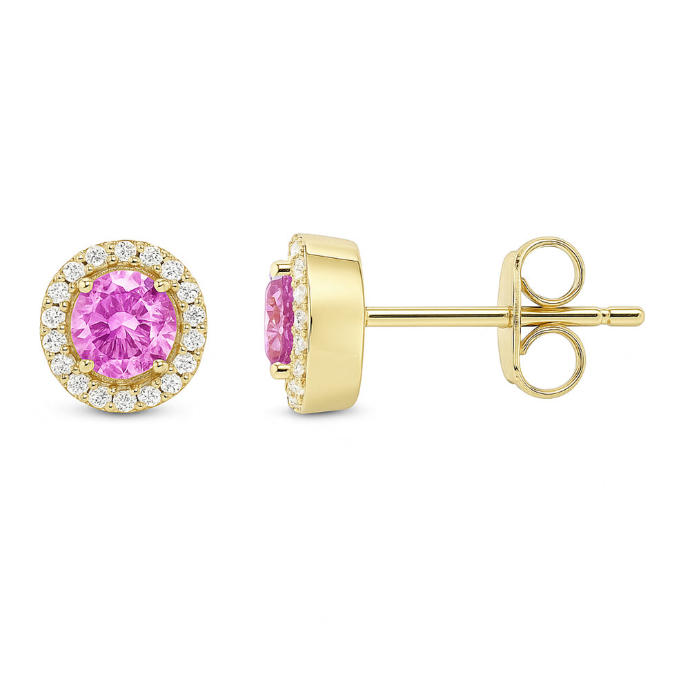 SPECIAL! .86ct G SI 14KT Yellow Gold Diamond & Pink Sapphire Gemstone Earrings