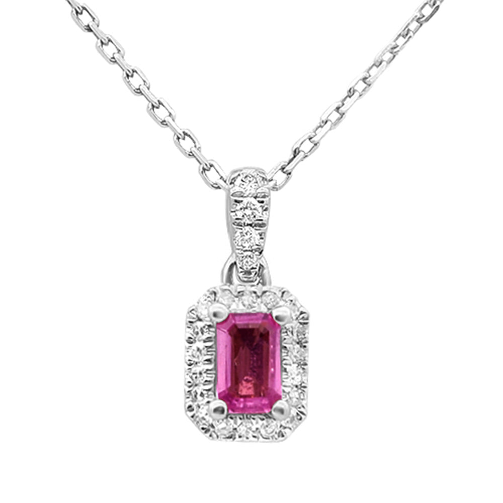 .46ct G SI 14K White Gold Diamond & Pink Sapphire Gemstone Halo Pendant 18" Long