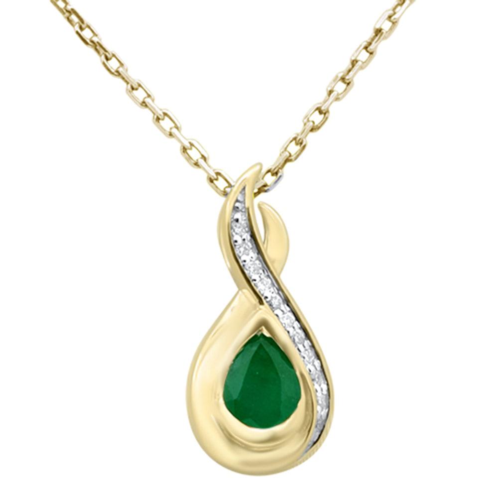 .30ct G SI 14K Yellow Gold Diamond & Emerald Gemstone Teardrop Pendant 18" Long
