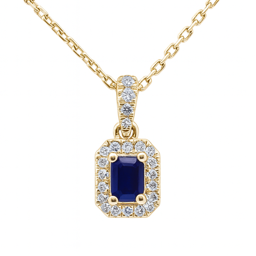 .41ct G SI 14K Yellow Gold Diamond & Blue Sapphire Gemstone Halo Pendant 18" Long