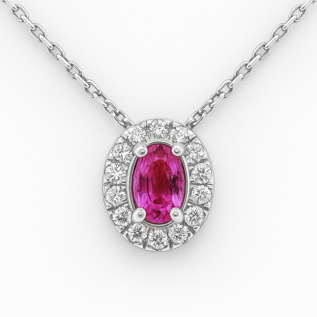 - Stone Count: 14 Round Diamonds & 1 Pink Sapphire