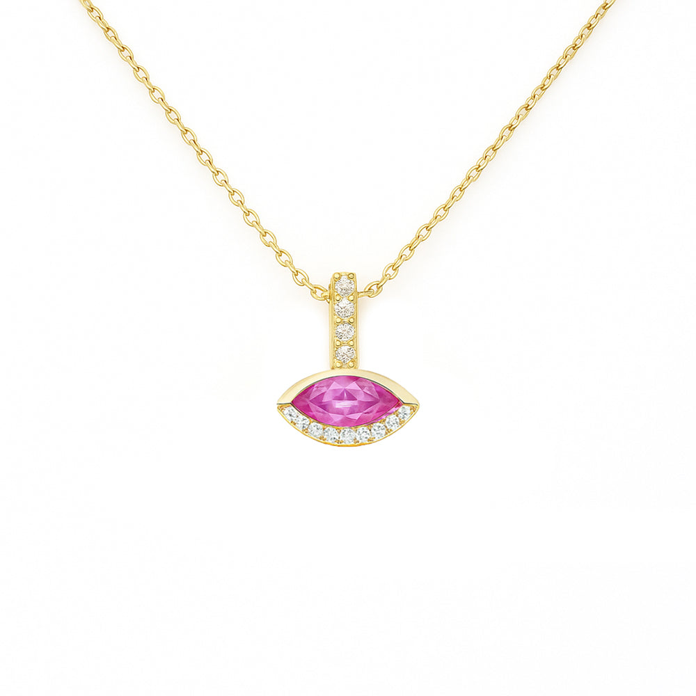 SPECIAL! .54ct G SI 14KT Yellow Gold Diamond & Marquise Shape Pink Sapphire Gemstone Pendant Necklace 18" Chain