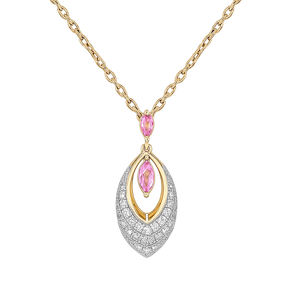 - Stone Count: 34 Round Diamonds, 2 Marquise Pink Sapphires