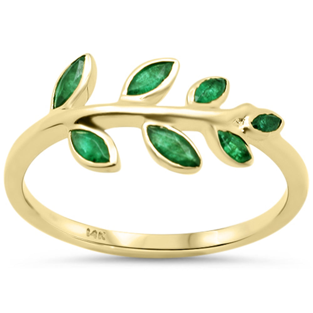 .40ct G SI 14K Yellow Gold Emerald Gemstone Leaf Ring Size 6.5